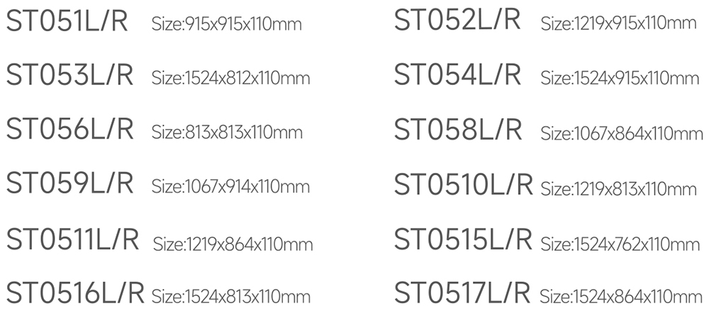 淋浴底盆 / ST051L/R,ST052L/R,ST053L/R,ST054L/R, ST056L/R,ST058L/R,ST059L/R,ST0510L/R, ST0511L/R,ST0515L/R,ST0516L/R, ST0517L/R