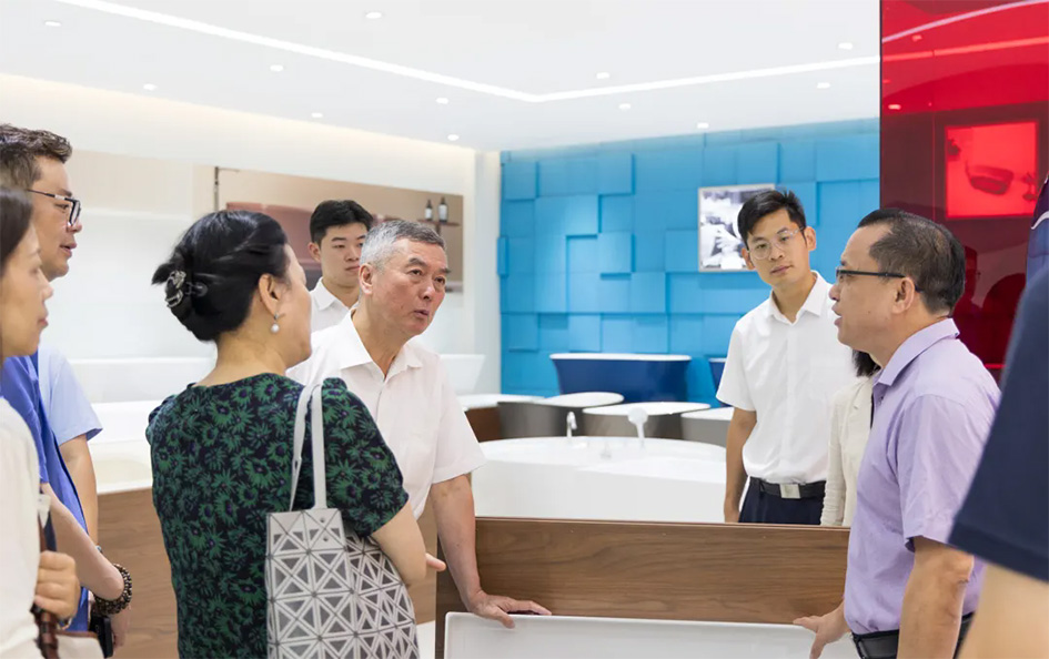 评审组首先参观了埃飞灵集团产品展厅,并与企业相关负责人就浴缸领域的发展趋势、技术现状、市场前景等进行了深入沟通交流。